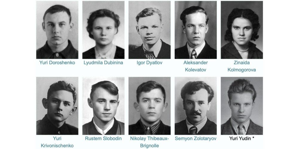 Olayın başlangıcı Ural Politeknik Enstitütüsü’ndeki bir grup mühendislik öğrencisinin dağcılıktaki seviyelerini 2’den 3’e çıkarmak isteyişlerine dayanır. Ural Politeknik Enstitüsü bu gün Ural Federal Üniversite olarak anılmaktadır. Sekizi erkek ikisi kadın öğrenci grubunun isimleri sırayla belirtilmiştir.