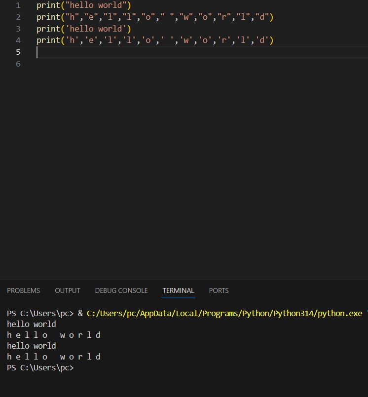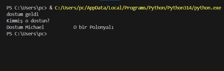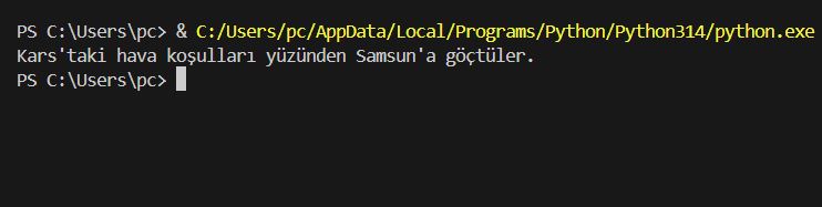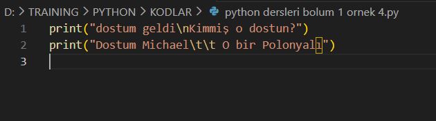 Yukarıda kullandığımız “ ” ve ‘ ’ belirteçli print komutunun çıkışları yukarıdaki ekran görüntüsünün alt kısmında belirtilmiştir.